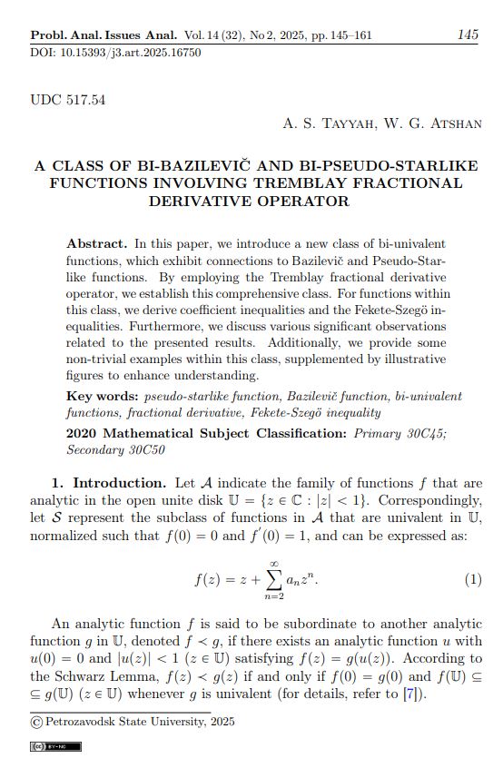 В этой статье вводится новый класс би-унивалентных функций, которые демонстрируют связи с функциями Bazilevič и псевдозвездообразными функциями. Используя оператор дробной производной Tremblay, создается этот комплексный класс. Для функций этого класса выводятся неравенства коэффициентов и неравенства Fekete-Szegö. Кроме того, обсуждаются различные важные наблюдения, связанные с представленными результатами. Приводится несколько нетривиальных примеров из этого класса, дополненных иллюстрациями для улучшения понимания.