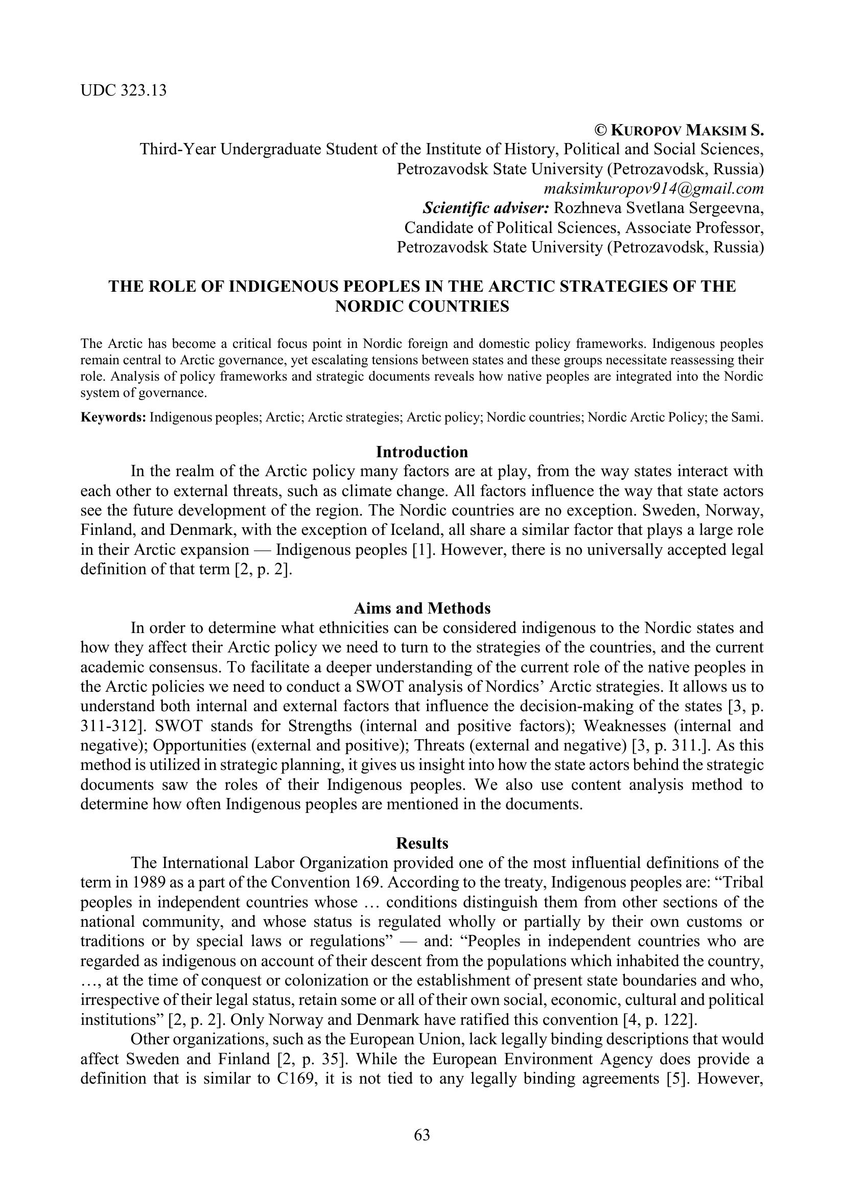 Kuropov M. S. The Role of Indigenous Peoples in the Arctic Strategies of the Nordic Countries / M. S. Kuropov. — Текст : электронный // Научно-исследовательская работа обучающихся и молодых учёных: материалы 77-й Всероссийской (с международным участием) научной конференции обучающихся и молодых учёных, посвящённой 85-летию ПетрГУ и 80-летию Победы в Великой Отечественной войне (г. Петрозаводск, 31 марта – 27 апреля 2025 года). — Петрозаводск : Изд-во ПетрГУ, 2025. — С. 63-66. — URL: http://elibrary.petrsu.ru/books/79544 (дата обращения: 05.12.2025)