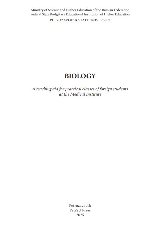 Biology : a teaching aid for practical classes of foreign students at the Medical Institute = Биология : учебно-методическое пособие для практических занятий иностранных студентов Медицинского института / М-во науки и высш. образования Рос. Федерации, Федер. гос. бюджет. образоват. учреждение высш. образования Петрозав. гос. ун-т ; сост. Т. А. Моисеева. — Петрозаводск : Издательство ПетрГУ, 2025. — [53] с. — ISBN 978-5-8021-4295-0. — Язык текста англ. — URL: http://elibrary.petrsu.ru/books/79647 (дата обращения: 05.12.2025)