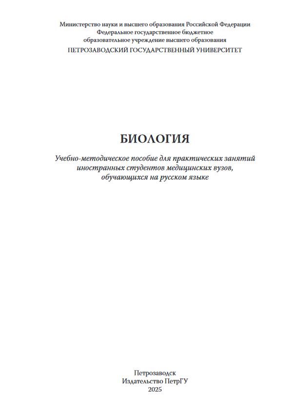 Биология : учебно-методическое пособие для практических занятий иностранных студентов медицинских вузов, обучающихся на русском языке / М-во науки и высш. образования Рос. Федерации, Федер. гос. бюджет. образоват. учреждение высш. образования Петрозав. гос. ун-т ; сост. Т. А. Моисеева. — Петрозаводск : Издательство ПетрГУ, 2025. — [40] с. — ISBN 978-5-8021-4294-3. — URL: http://elibrary.petrsu.ru/books/79664 (дата обращения: 05.12.2025)