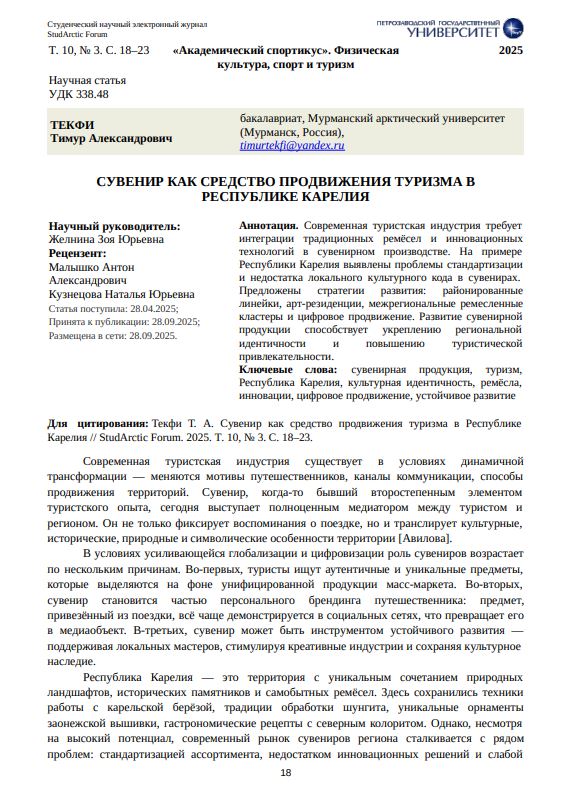 Сувенир как средство продвижения туризма в Республике Карелия