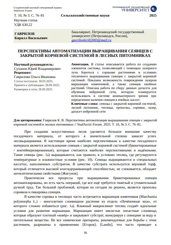Перспективы автоматизации выращивания сеянцев с закрытой корневой системой в лесных питомниках