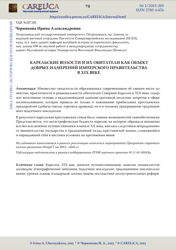 Карельские волости и их обитатели как объект добрых намерений имперского правительства в XIX векеКюршунова Ирина Алексеевна