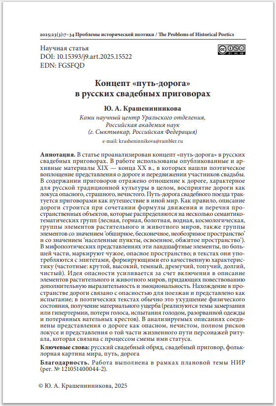 Концепт «путь-дорога» в русских свадебных приговорахЖаткин Дмитрий Николаевич, Тимакова Анна Александровна