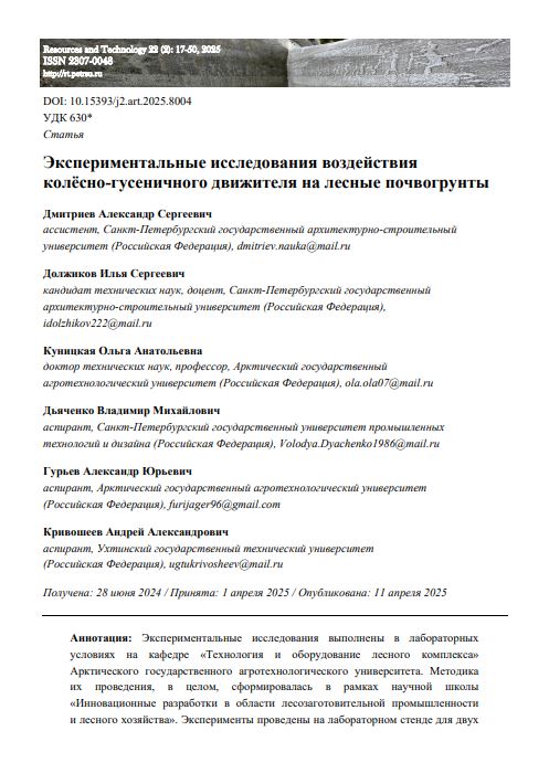 Экспериментальные исследования воздействия колёсно-гусеничного движителя на лесные почвогрунты