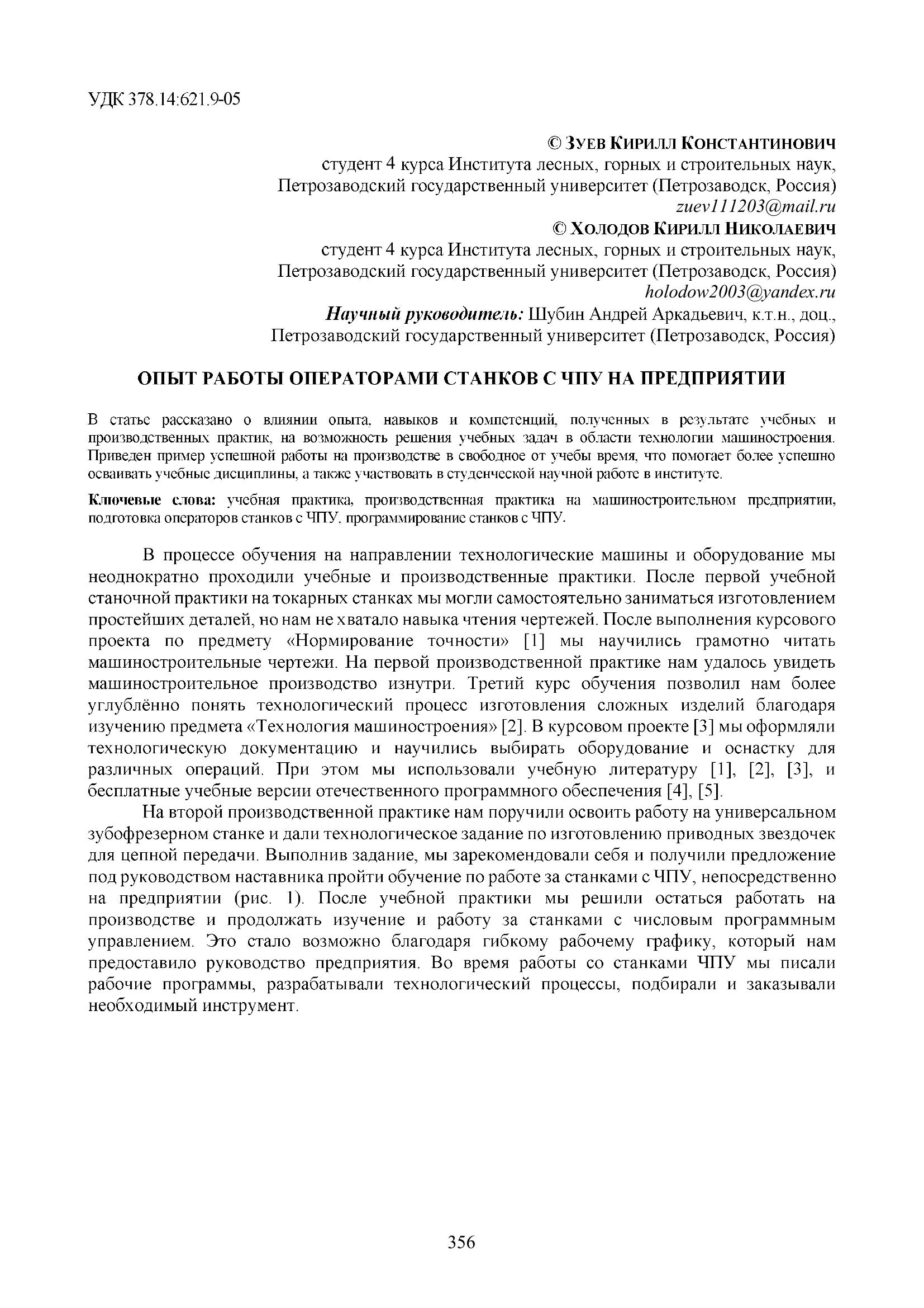 Зуев К. К. Опыт работы операторами станков с ЧПУ на предприятии / К. К. Зуев, К. Н. Холодов. — Текст : электронный // Научно-исследовательская работа обучающихся и молодых учёных: материалы 77-й Всероссийской (с международным участием) научной конференции обучающихся и молодых учёных, посвящённой 85-летию ПетрГУ и 80-летию Победы в Великой Отечественной войне (г. Петрозаводск, 31 марта – 27 апреля 2025 года). — Петрозаводск : Изд-во ПетрГУ, 2025. — С. 356-358. — URL: http://elibrary.petrsu.ru/books/80184 (дата обращения: 05.12.2025)