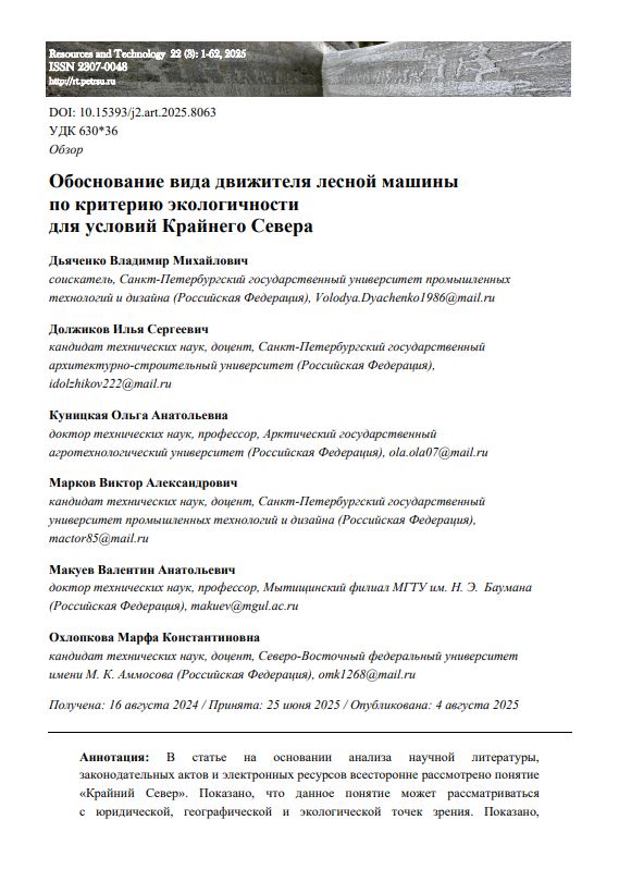 Обоснование вида движителя лесной машины по критерию экологичности для условий Крайнего Севера