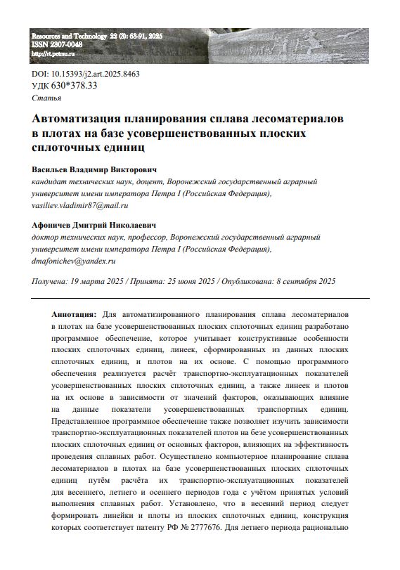 Автоматизация планирования сплава лесоматериалов в плотах на базе усовершенствованных плоских сплоточных единиц