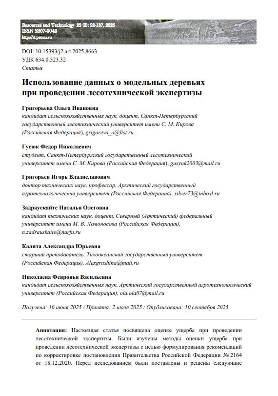 Использование данных о модельных деревьях при проведении лесотехнической экспертизы