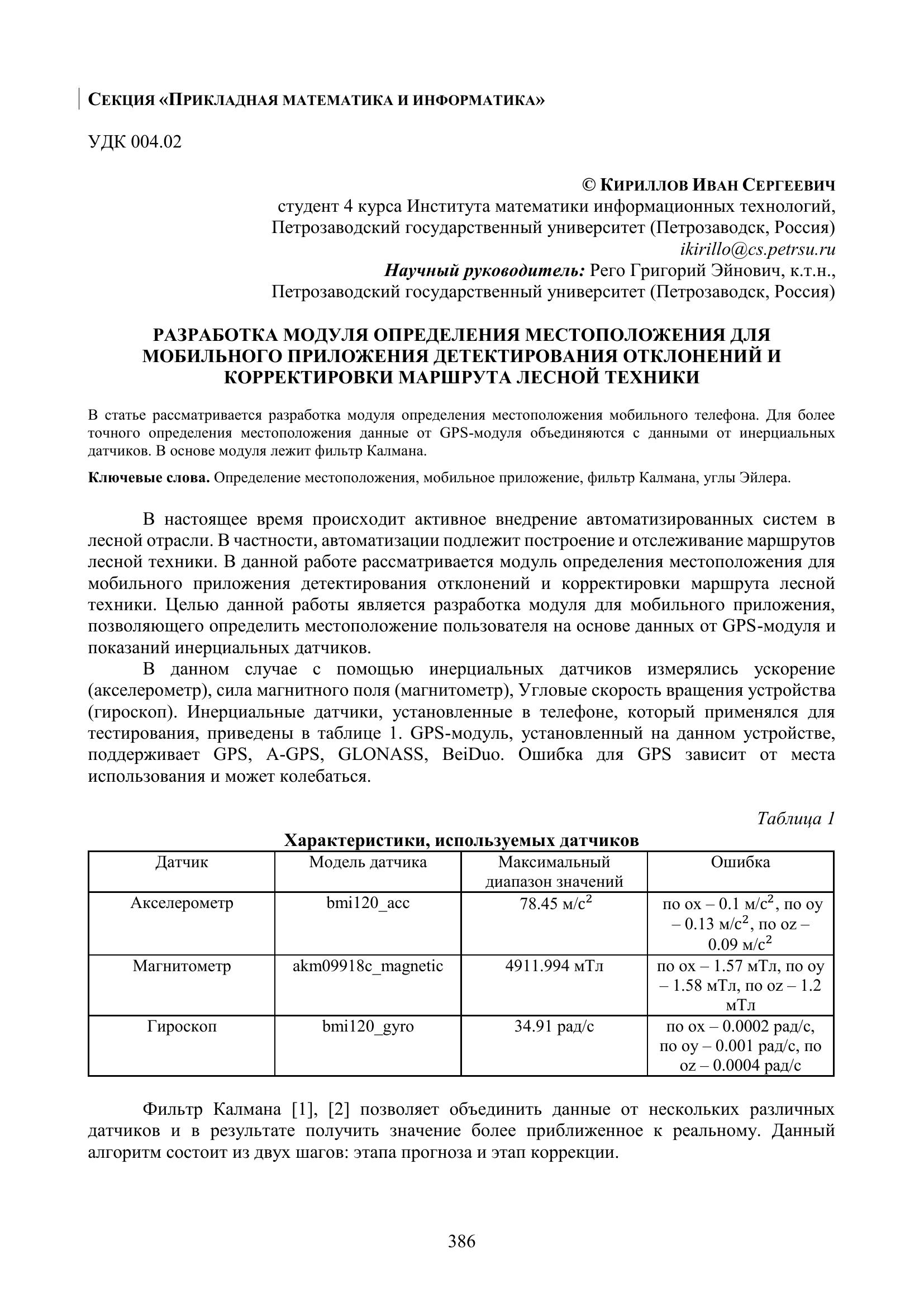 Кириллов И. С. Разработка модуля определения местоположения для мобильного приложения детектирования отклонений и корректировки маршрута лесной техники / И. С. Кириллов. — Текст : электронный // Научно-исследовательская работа обучающихся и молодых учёных: материалы 77-й Всероссийской (с международным участием) научной конференции обучающихся и молодых учёных, посвящённой 85-летию ПетрГУ и 80-летию Победы в Великой Отечественной войне (г. Петрозаводск, 31 марта – 27 апреля 2025 года). — Петрозаводск : Изд-во ПетрГУ, 2025. — С. 386-390. — URL: http://elibrary.petrsu.ru/books/80349 (дата обращения: 05.12.2025)