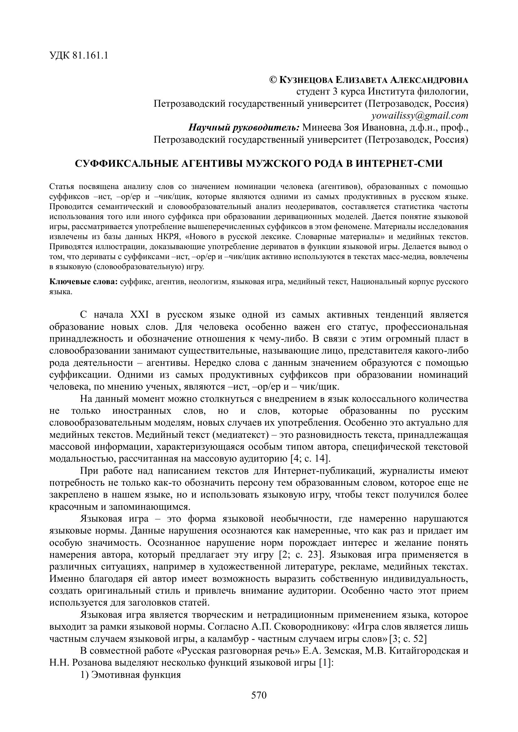 Суффиксальные агентивы мужского рода в интернет-СМИ