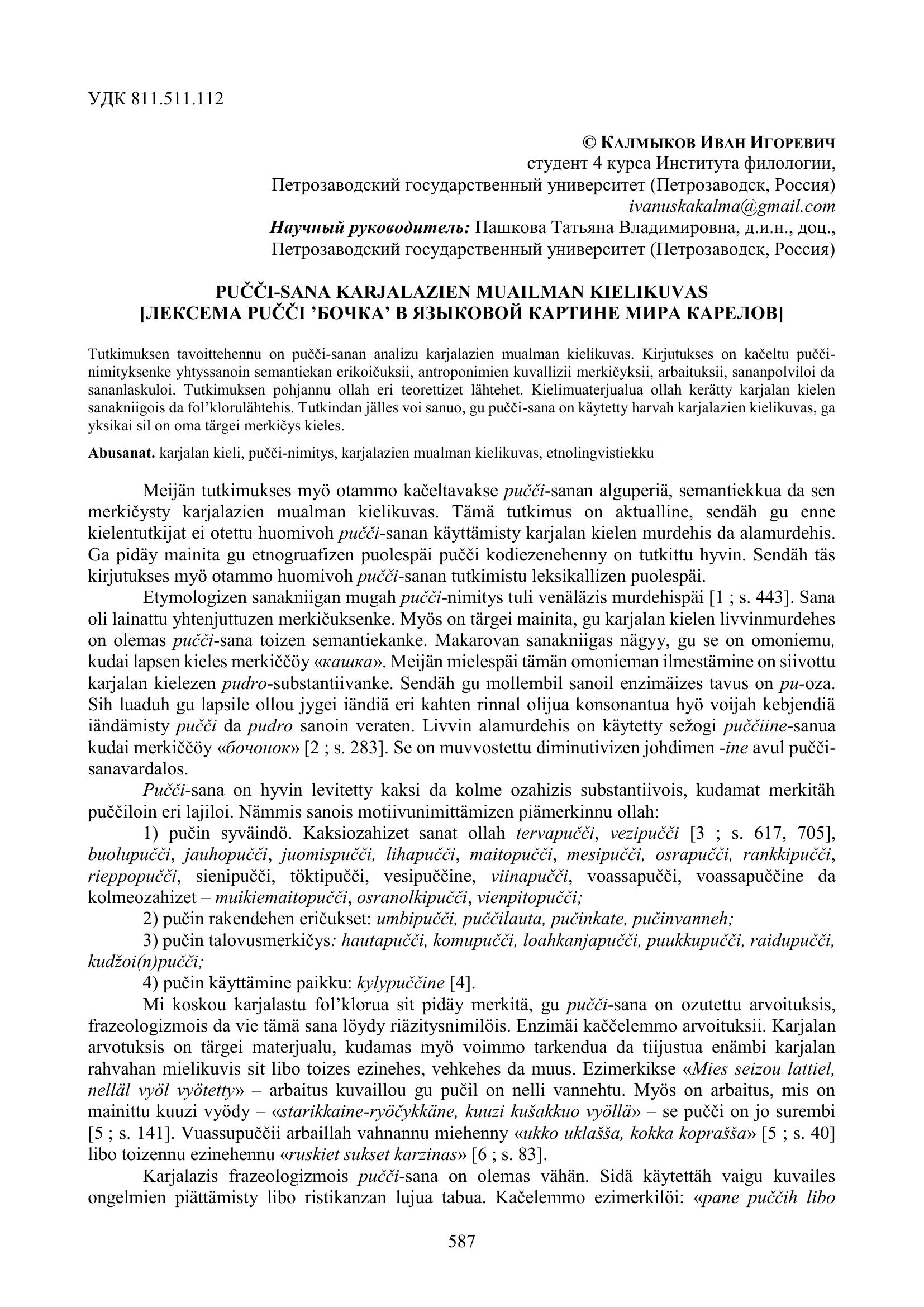 Pučči-sana karjalazien mualman kielikuvas [Лексема pučči ’бочка’ в языковой картине мира карелов]
