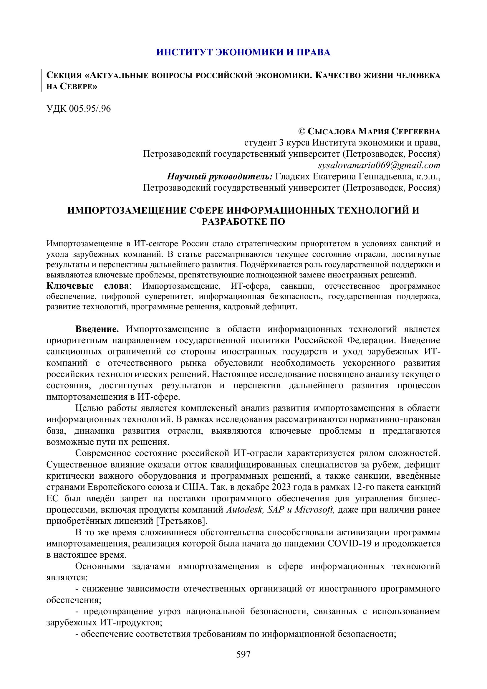 Сысалова М. С. Импортозамещение в сфере информационных технологий и разработке ПО / М. С. Сысалова. — Текст : электронный // Научно-исследовательская работа обучающихся и молодых учёных: материалы 77-й Всероссийской (с международным участием) научной конференции обучающихся и молодых учёных, посвящённой 85-летию ПетрГУ и 80-летию Победы в Великой Отечественной войне (г. Петрозаводск, 31 марта – 27 апреля 2025 года). — Петрозаводск : Изд-во ПетрГУ, 2025. — С. 597-599. — URL: http://elibrary.petrsu.ru/books/80764 (дата обращения: 05.12.2025)