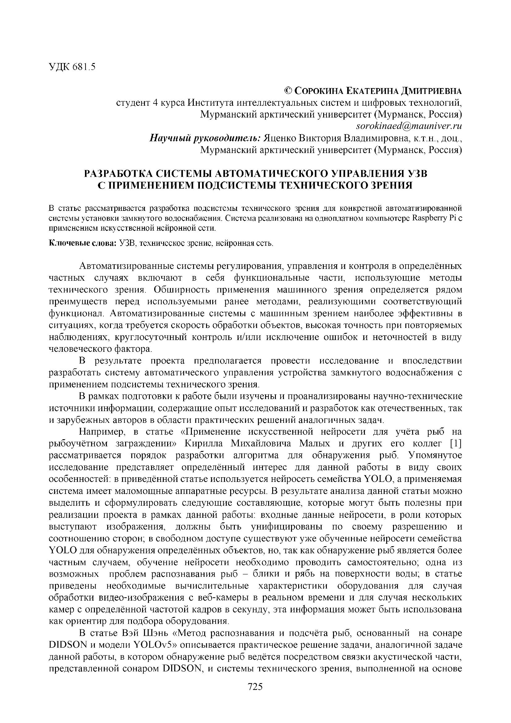 Сорокина Е. Д. Разработка системы автоматического управления УЗВ с применением подсистемы технического зрения / Е. Д. Сорокина. — Текст : электронный // Научно-исследовательская работа обучающихся и молодых учёных: материалы 77-й Всероссийской (с международным участием) научной конференции обучающихся и молодых учёных, посвящённой 85-летию ПетрГУ и 80-летию Победы в Великой Отечественной войне (г. Петрозаводск, 31 марта – 27 апреля 2025 года). — Петрозаводск : Изд-во ПетрГУ, 2025. — С. 725-729. — URL: http://elibrary.petrsu.ru/books/81084 (дата обращения: 13.01.2026)