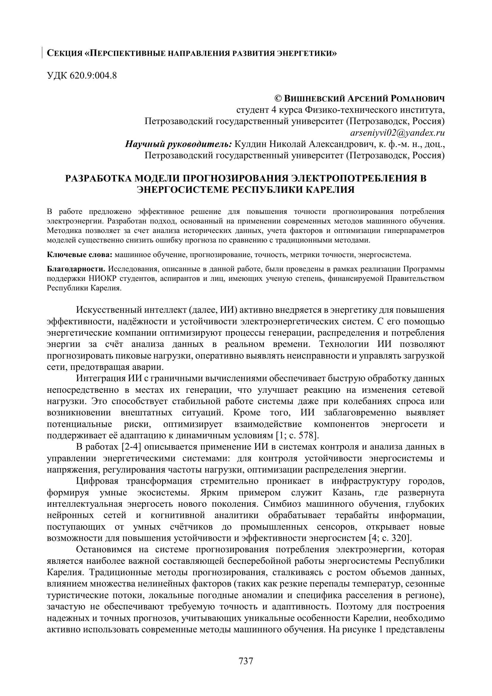 Вишневский А. Р. Разработка модели прогнозирования электропотребления в энергосистеме Республики Карелия / А. Р. Вишневский. — Текст : электронный // Научно-исследовательская работа обучающихся и молодых учёных: материалы 77-й Всероссийской (с международным участием) научной конференции обучающихся и молодых учёных, посвящённой 85-летию ПетрГУ и 80-летию Победы в Великой Отечественной войне (г. Петрозаводск, 31 марта – 27 апреля 2025 года). — Петрозаводск : Изд-во ПетрГУ, 2025. — С. 737-740. — URL: http://elibrary.petrsu.ru/books/81144 (дата обращения: 13.01.2026)