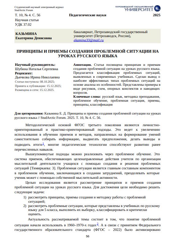 Принципы и приемы создания проблемной ситуации на уроках русского языкаКалинина Полина Николаевна