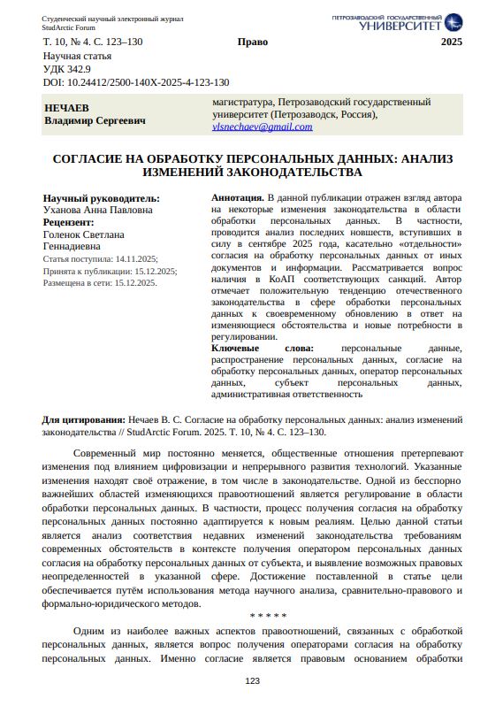 В данной публикации отражен взгляд автора на некоторые изменения законодательства в области обработки персональных данных. В частности, проводится анализ последних новшеств, вступивших в силу в сентябре 2025 года, касательно «отдельности» согласия на обработку персональных данных от иных документов и информации. Рассматривается вопрос наличия в КоАП соответствующих санкций. Автор отмечает положительную тенденцию отечественного законодательства в сфере обработки персональных данных к своевременному обновлению в ответ на изменяющиеся обстоятельства и новые потребности в регулировании.