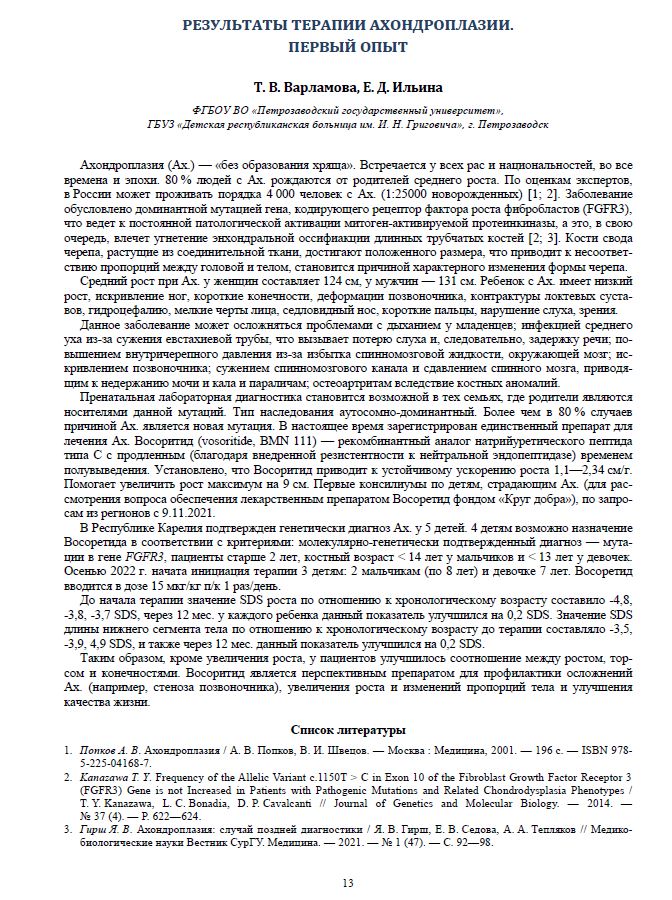 Результаты терапии ахондроплазии. Первый опытВарламова Татьяна Валентиновна, Уквальберг Марина Евгеньевна