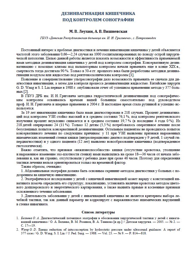 Дезинвагинация кишечника под контролем сонографииМихайлов Владислав Сергеевич, Зарипова Юлия Рафаэльевна