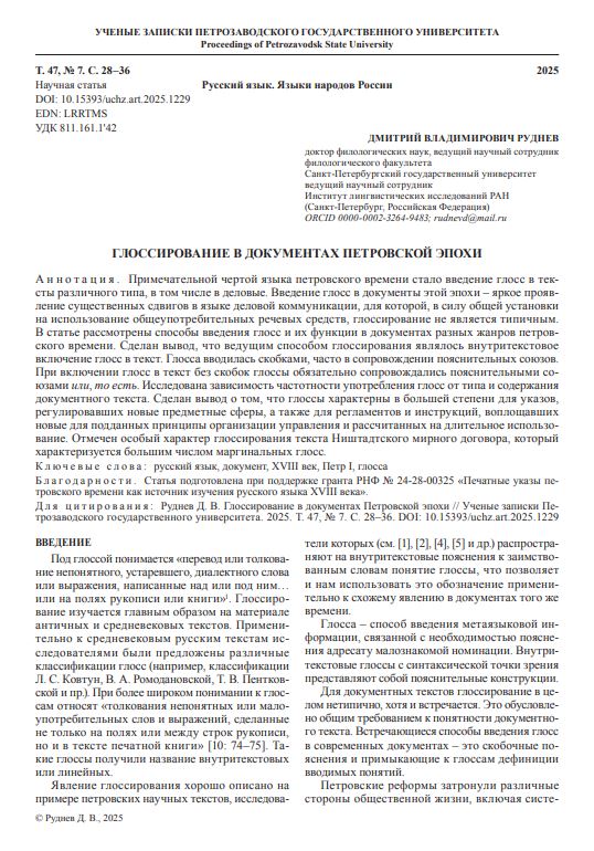 Глоссирование в документах Петровской эпохи