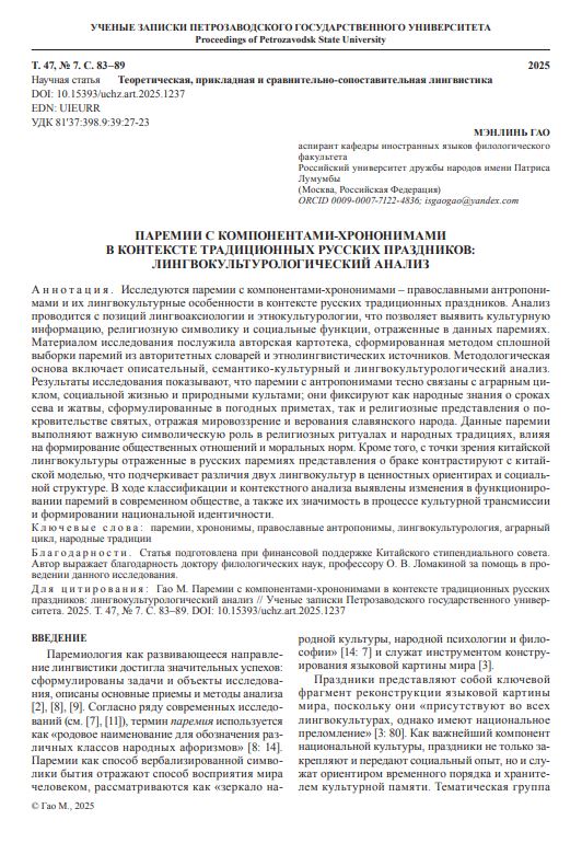 Паремии с компонентами-хрононимами в контексте традиционных русских праздников: лингвокультурологический анализМухин Никита Андреевич