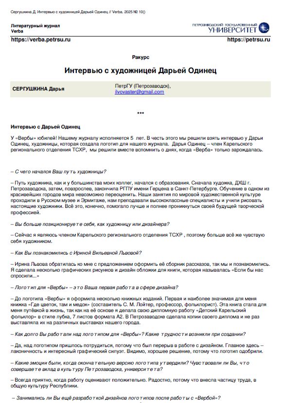 У «Вербы» юбилей! Нашему журналу исполняется 5 лет. В честь этого мы решили взять интервью у Дарьи Одинец, художницы, которая создала логотип для нашего журнала.