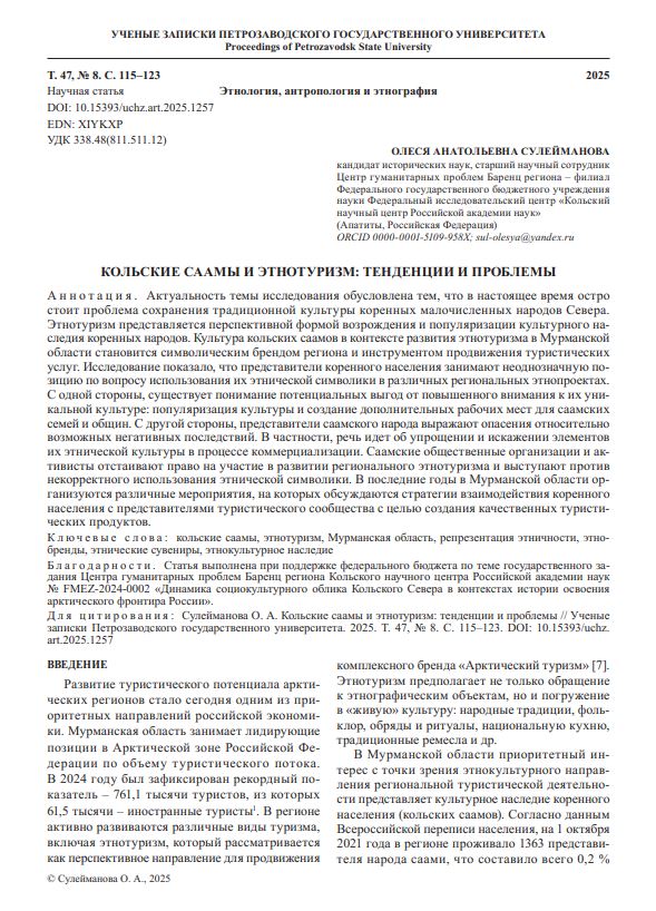 Кольские саамы и этнотуризм: тенденции и проблемы