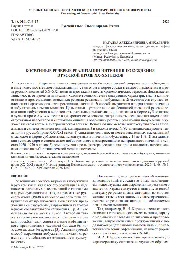 Косвенные речевые реализации интенции побуждения в русской прозе XX–XXI веков