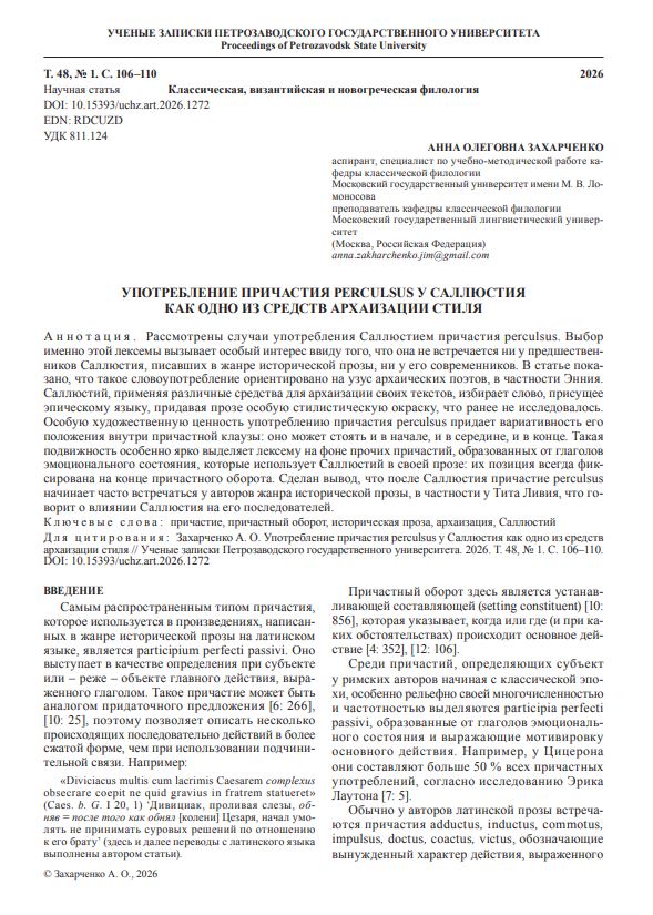 Употребление причастия perculsus у Саллюстия как одно из средств архаизации стиля