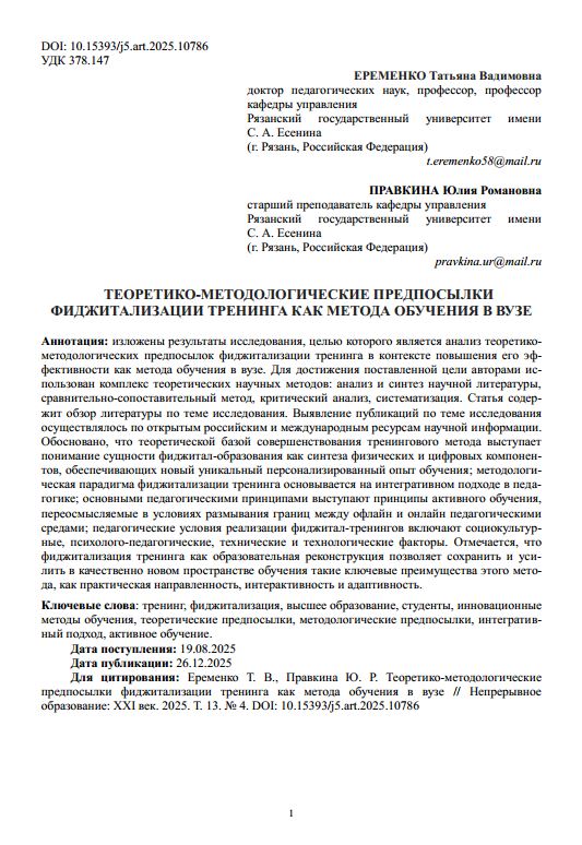 Теоретико-методологические предпосылки фиджитализации тренинга как метода обучения в вузе