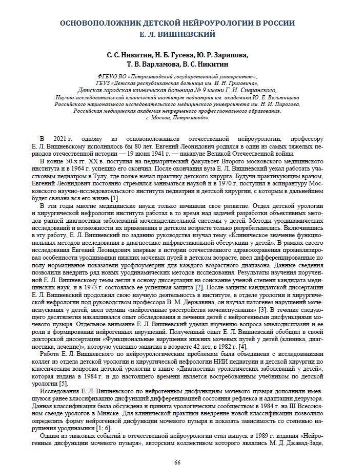 Основоположник детской нейроурологии в России Е. Л. ВишневскийНикитин Сергей Сергеевич, Никитин Вадим Сергеевич