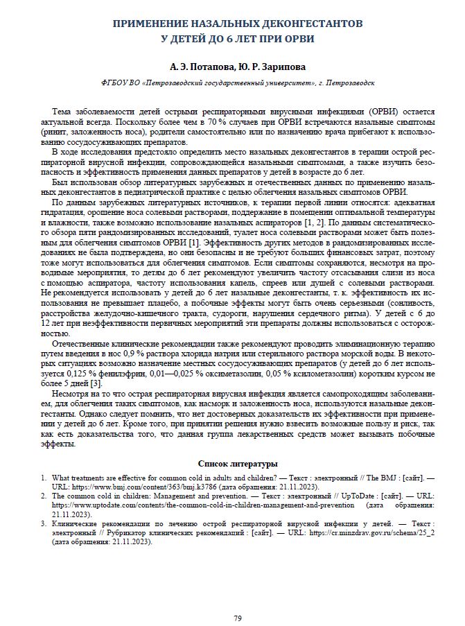 Применение назальных деконгестантов у детей до 6 лет при ОРВИПяттоев Юрий Григорьевич