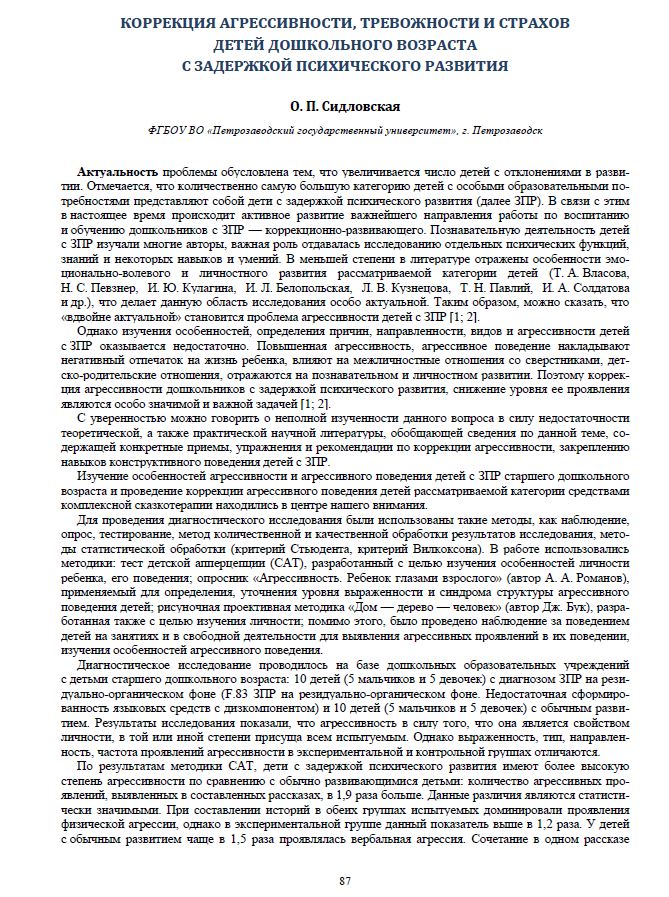 Коррекция агрессивности, тревожности и страхов детей дошкольного возраста с задержкой психического развития