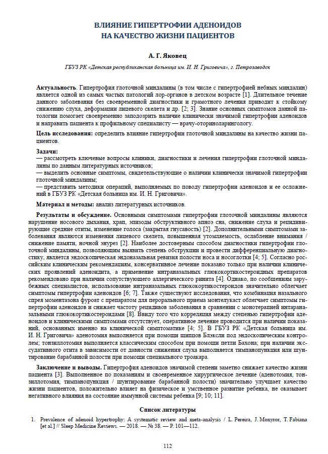 Влияние гипертрофии аденоидов на качество жизни пациентов