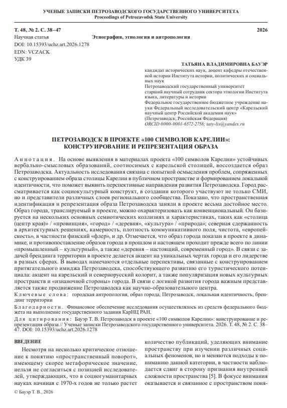 Петрозаводск в проекте «100 символов Карелии»: конструирование и репрезентация образа