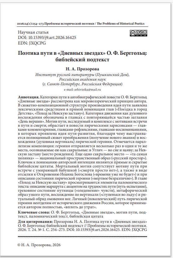 Поэтика пути в «Дневных звездах» О. Ф. Берггольц: библейский подтекст