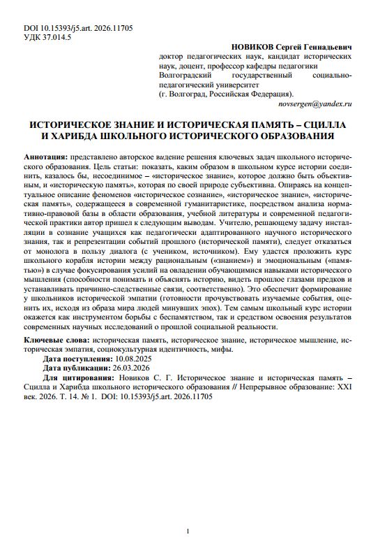 Историческое знание и историческая память – Сцилла и Харибда школьного исторического образованияБулат Роман Евгеньевич