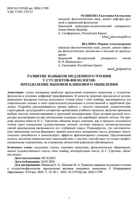 Развитие навыков медленного чтения у студентов-филологов: преодоление вызовов клипового мышления