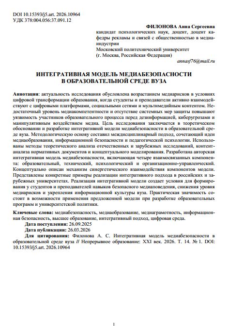 Интегративная модель медиабезопасности в образовательной среде вуза