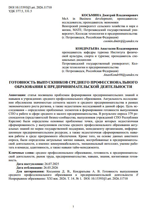 Готовность выпускников среднего профессионального образования к предпринимательской деятельности