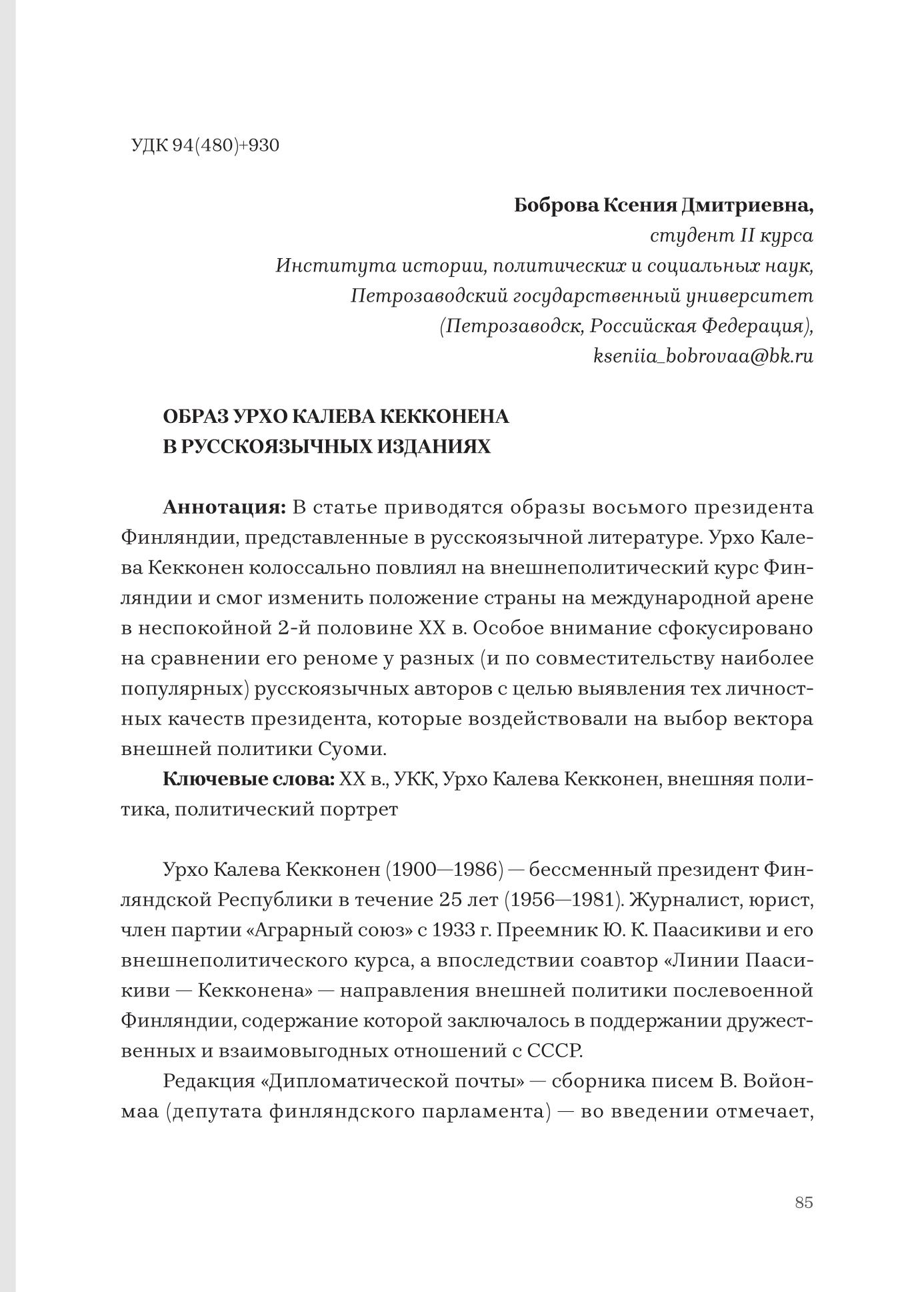 Образ Урхо Калева Кекконена в русскоязычных изданияхМартынов Дмитрий Евгеньевич, Мартынова Юлия Александровна