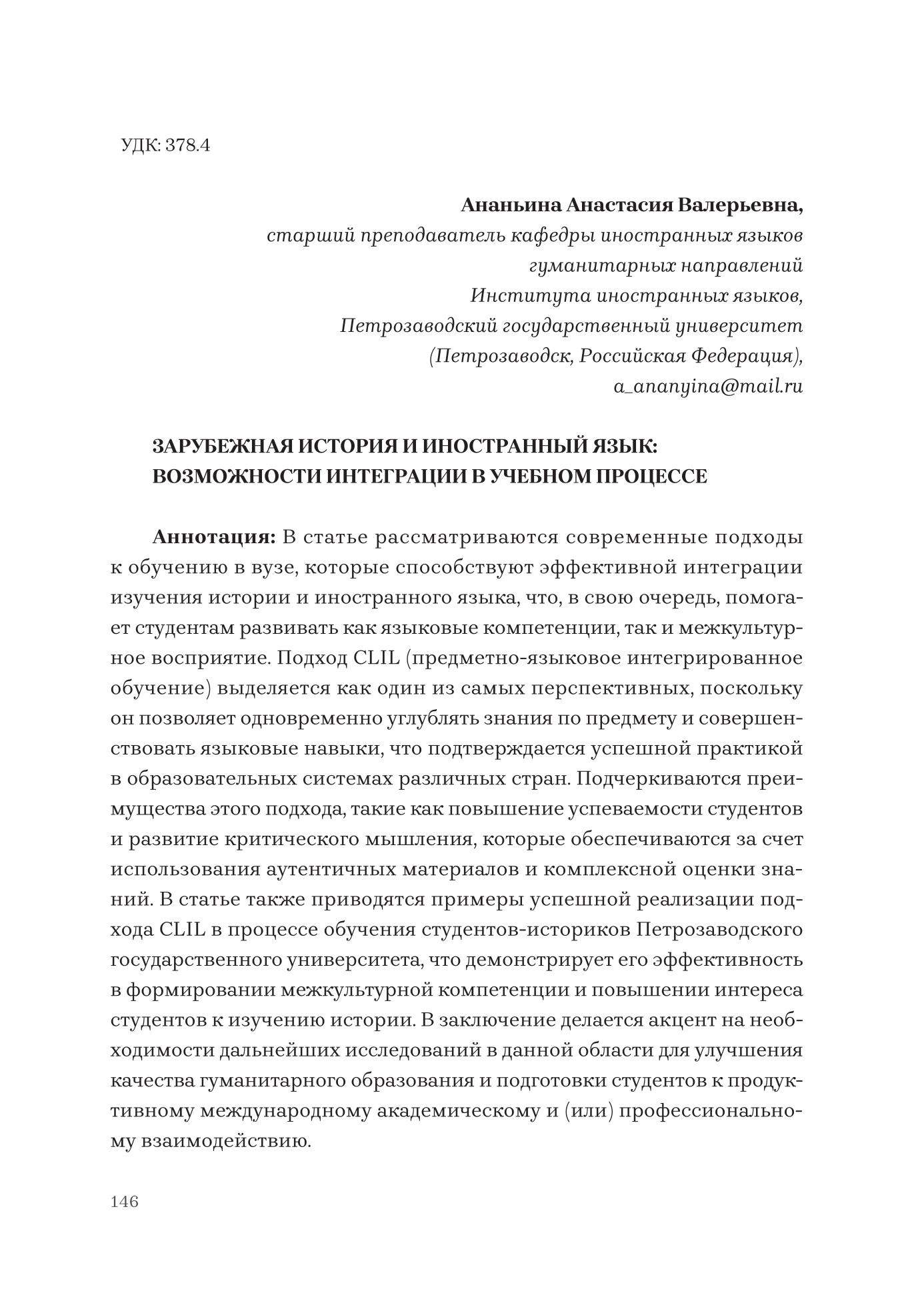 В статье рассматриваются современные подходы к обучению в вузе, которые способствуют эффективной интеграции изучения истории и иностранного языка, что, в свою очередь, помогает студентам развивать как языковые компетенции, так и межкультурное восприятие. Подход CLIL (предметно-языковое интегрированное обучение) выделяется как один из самых перспективных, поскольку он позволяет одновременно углублять знания по предмету и совершенствовать языковые навыки, что подтверждается успешной практикой в образовательных системах различных стран. В статье также приводятся примеры успешной реализации подхода CLIL в процессе обучения студентов-историков Петрозаводского государственного университета, что демонстрирует его эффективность в формировании межкультурной компетенции и повышении интереса студентов к изучению истории.
