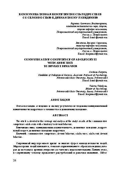 Коммуникативная компетентность подростков со склонностью к девиантному поведению